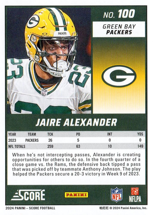 2024 Panini Score Football Jaire Alexander Green Bay Packers #100