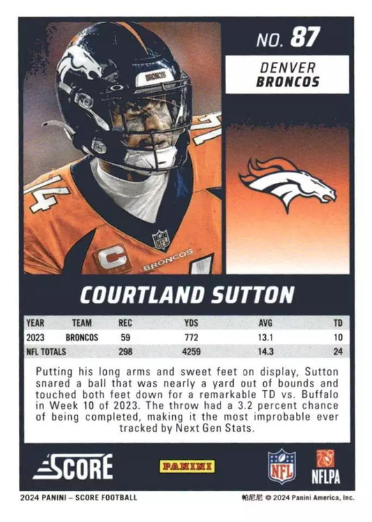 2024 Panini Score Football Courtland Sutton Denver Broncos #87