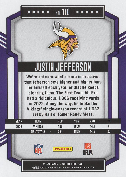 2023 Panini Score Football Justin Jefferson Minnesota Vikings #110