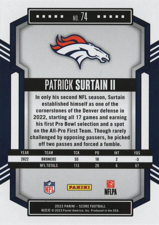 2023 Panini Score Football Patrick Surtain II Denver Broncos #74