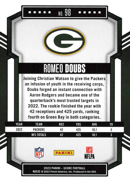 2023 Panini Score Football Romeo Doubs Green Bay Packers #98
