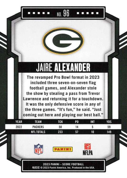 2023 Panini Score Football Jaire Alexander Green Bay Packers #96