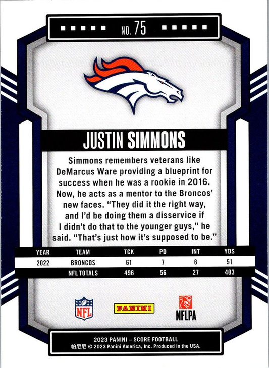 2023 Panini Score Football Justin Simmons Denver Broncos #75