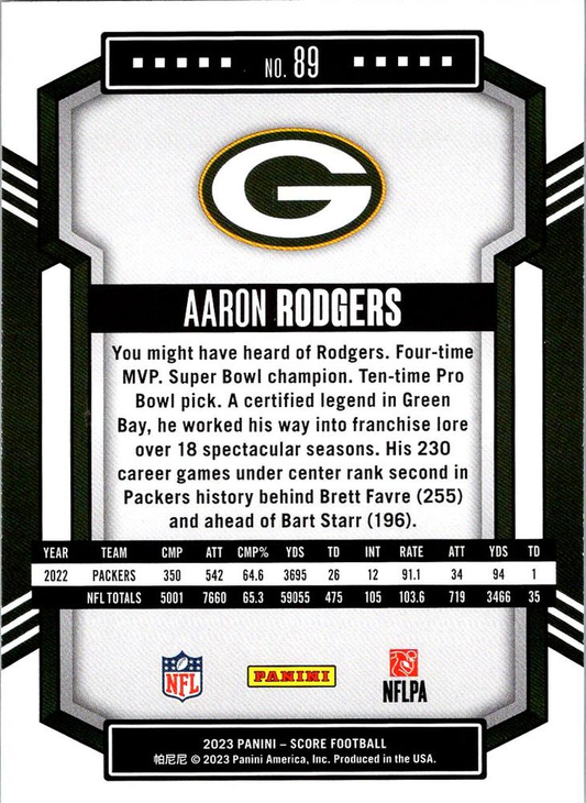 2023 Panini Score Football Aaron Rodgers Green Bay Packers #89