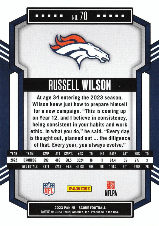 2023 Panini Score Football Russell Wilson Denver Broncos #70