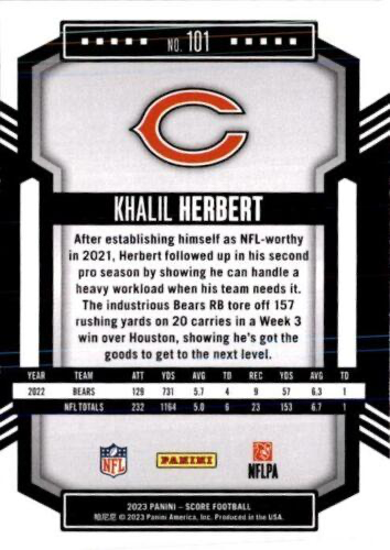 2023 Panini Score Football Khalil Herbert Chicago Bears #101