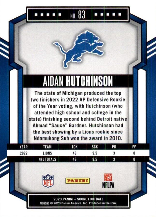 2023 Panini Score Football Aidan Hutchinson Detroit Lions #83