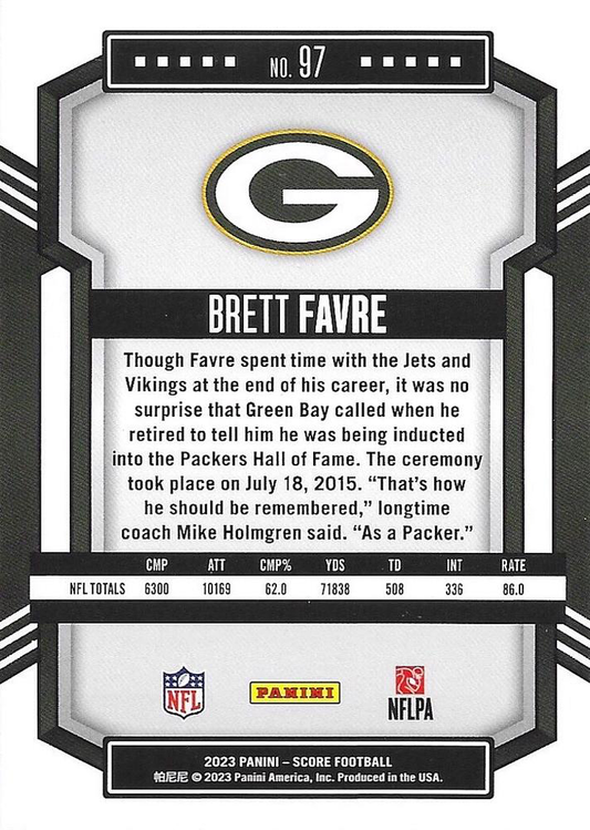 2023 Panini Score Football Brett Favre Green Bay Packers #97