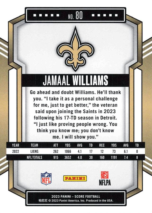 2023 Panini Score Football Jamaal Williams New Orleans Saints #80