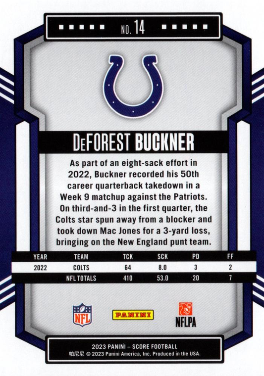 2023 Panini Score Football DeForest Buckner Indianapolis Colts #14