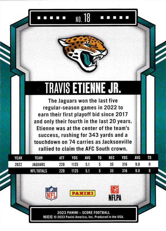 2023 Panini Score Football Travis Etienne Jr. Jacksonville Jaguars #18