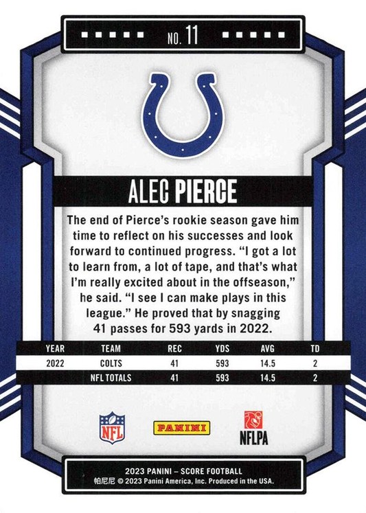 2023 Panini Score Football Alec Pierce Indianapolis Colts #11