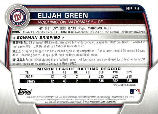 2023 Topps Bowman Paper Prospects Elijah Green Washington Nationals #BP-23