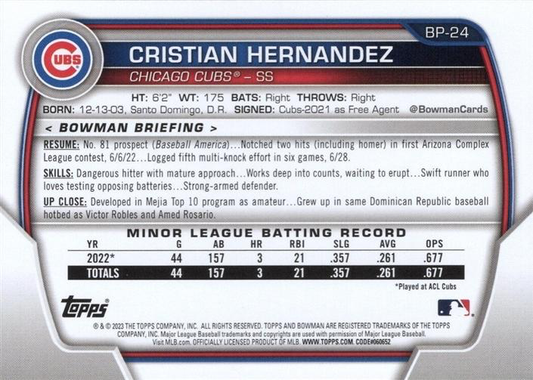 2023 Topps Bowman Paper Prospects Cristian Hernandez Chicago Cubs #BP-24