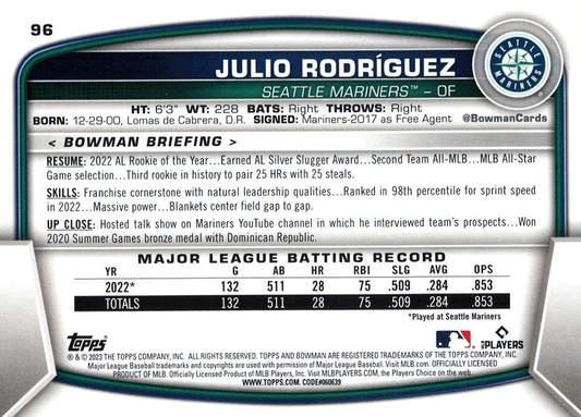 2023 Topps Bowman Julio Rodriguez Seattle Mariners #96