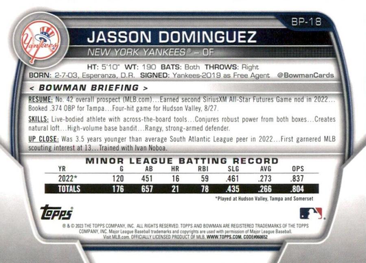 2023 Topps Bowman Paper Prospects Jasson Dominguez New York Yankees #BP-18