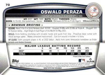 2023 Topps Bowman Oswald Peraza RC New York Yankees #70