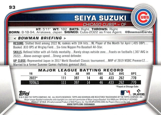 2023 Topps Bowman Seiya Suzuki Chicago Cubs #93