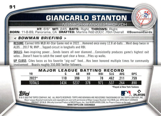 2023 Topps Bowman Giancarlo Stanton New York Yankees #91