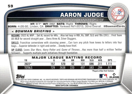 2023 Topps Bowman Aaron Judge New York Yankees #59