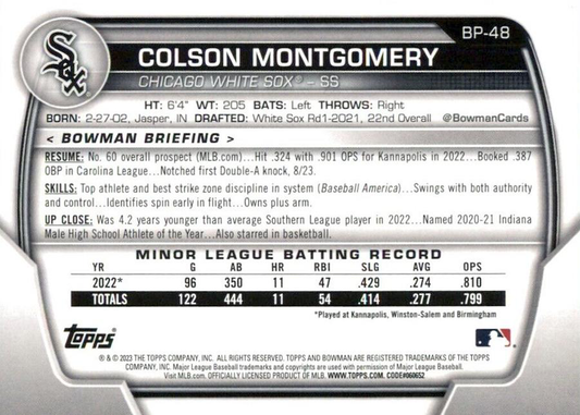 2023 Topps Bowman Paper Prospects Colson Montgomery Chicago White Sox #BP-48