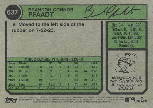 2023 Topps Heritage Brandon Pfaadt RC Arizona Diamondbacks #637