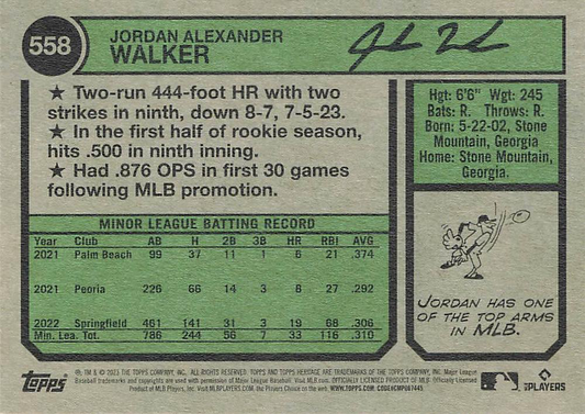 2023 Topps Heritage Jordan Walker RC St. Louis Cardinals #558