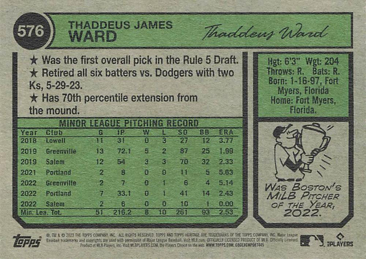 2023 Topps Heritage Thaddeus Ward RC Washington Nationals #576