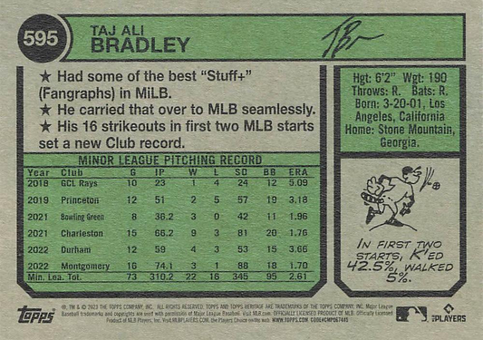 2023 Topps Heritage Taj Bradley RC Tampa Bay Rays #595