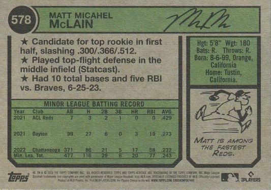 2023 Topps Heritage Matt McLain RC Cincinnati Reds #578