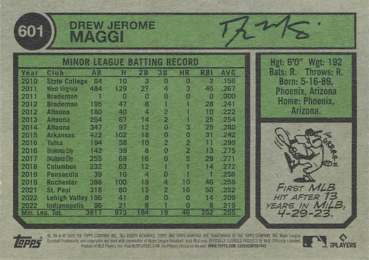2023 Topps Heritage Drew Maggi RC Pittsburgh Pirates #601