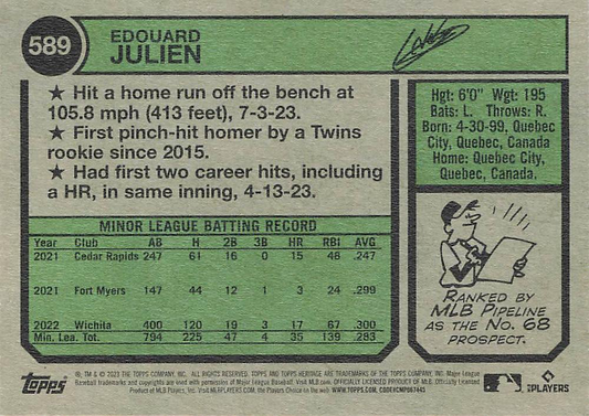 2023 Topps Heritage Edouard Julien RC Minnesota Twins #589