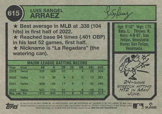 2023 Topps Heritage Luis Arraez Miami Marlins #615