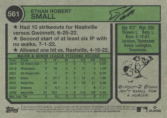 2023 Topps Heritage Ethan Small RC Milwaukee Brewers #561