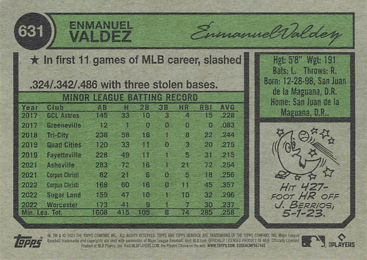 2023 Topps Heritage Enmanuel Valdez RC Boston Red Sox #631