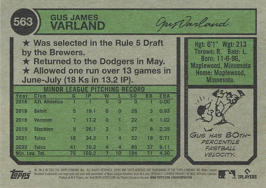 2023 Topps Heritage Gus Varland RC Los Angeles Dodgers #563