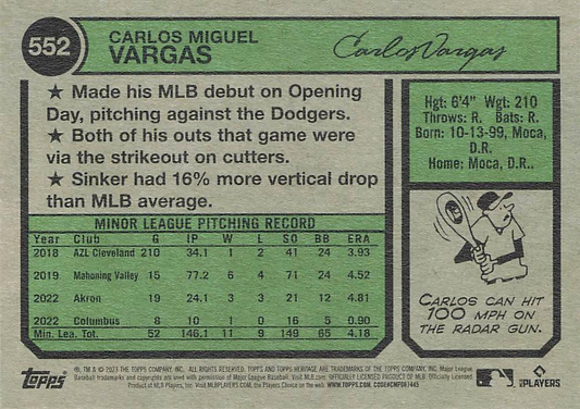 2023 Topps Heritage Carlos Vargas RC Arizona Diamondbacks #552