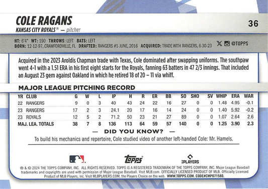 2024 Topps Big League Common Cole Ragans Kansas City Royals #36