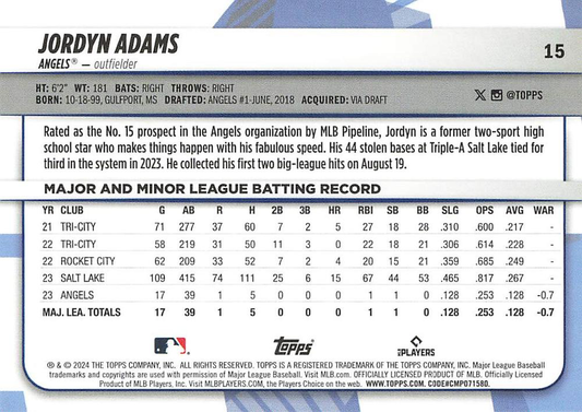 2024 Topps Big League Common Jordyn Adams RC Los Angeles Angels #15