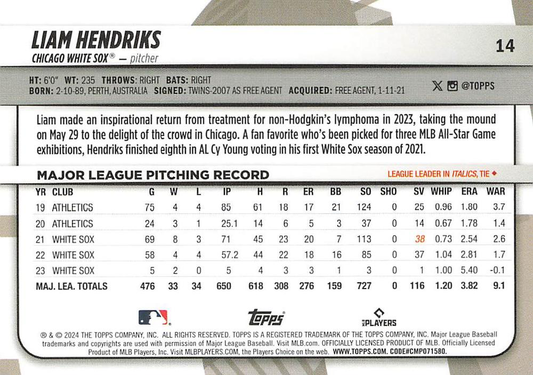 2024 Topps Big League Common Liam Hendriks Chicago White Sox #14