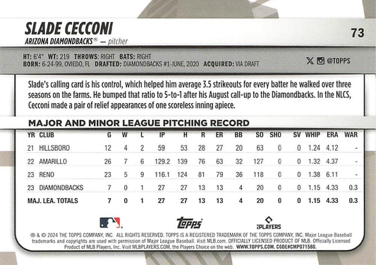 2024 Topps Big League Common Slade Cecconi RC Arizona Diamondbacks #73