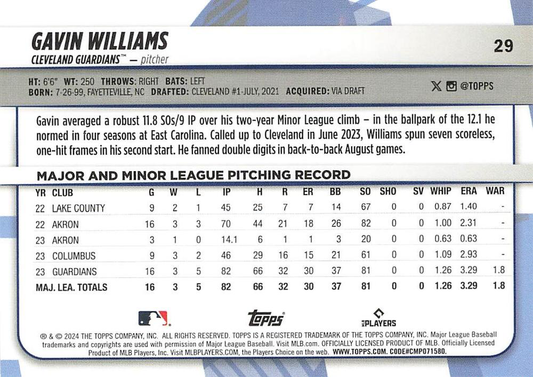 2024 Topps Big League Common Gavin Williams RC Cleveland Guardians #29
