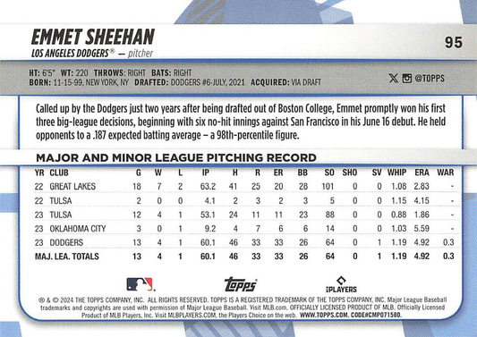 2024 Topps Big League Common Emmet Sheehan RC Los Angeles Dodgers #95