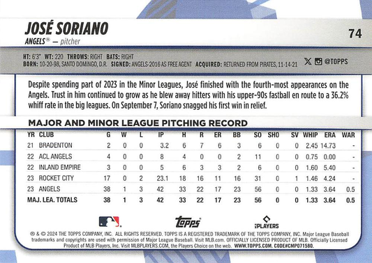 2024 Topps Big League Common José Soriano RC Los Angeles Angels #74