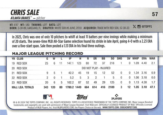 2024 Topps Big League Common Chris Sale Atlanta Braves #57