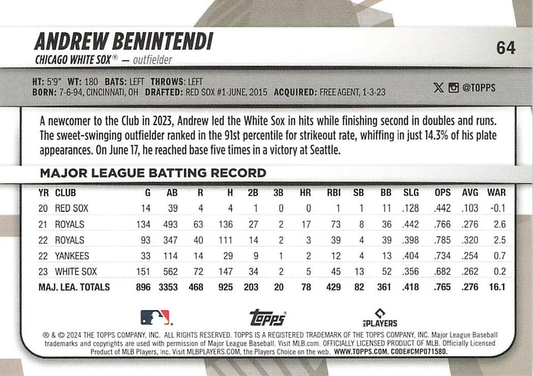 2024 Topps Big League Common Andrew Benintendi Chicago White Sox #64