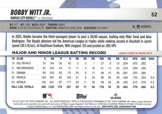 2024 Topps Big League Common Bobby Witt Jr. Kansas City Royals #52