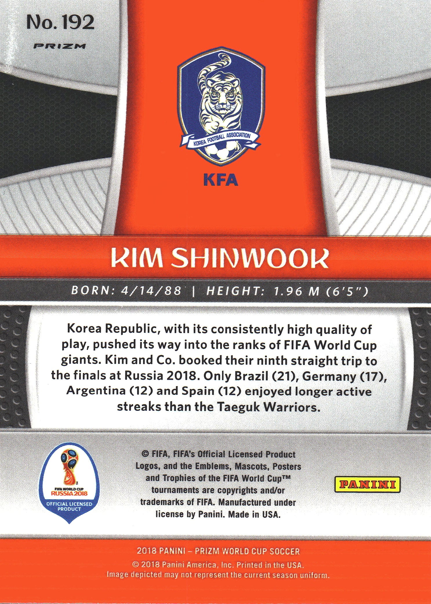 2018 Panini Prizm FIFA World Cup Green & Orange Wave Prizm Kim Shin-Wook #192 Corée du Sud