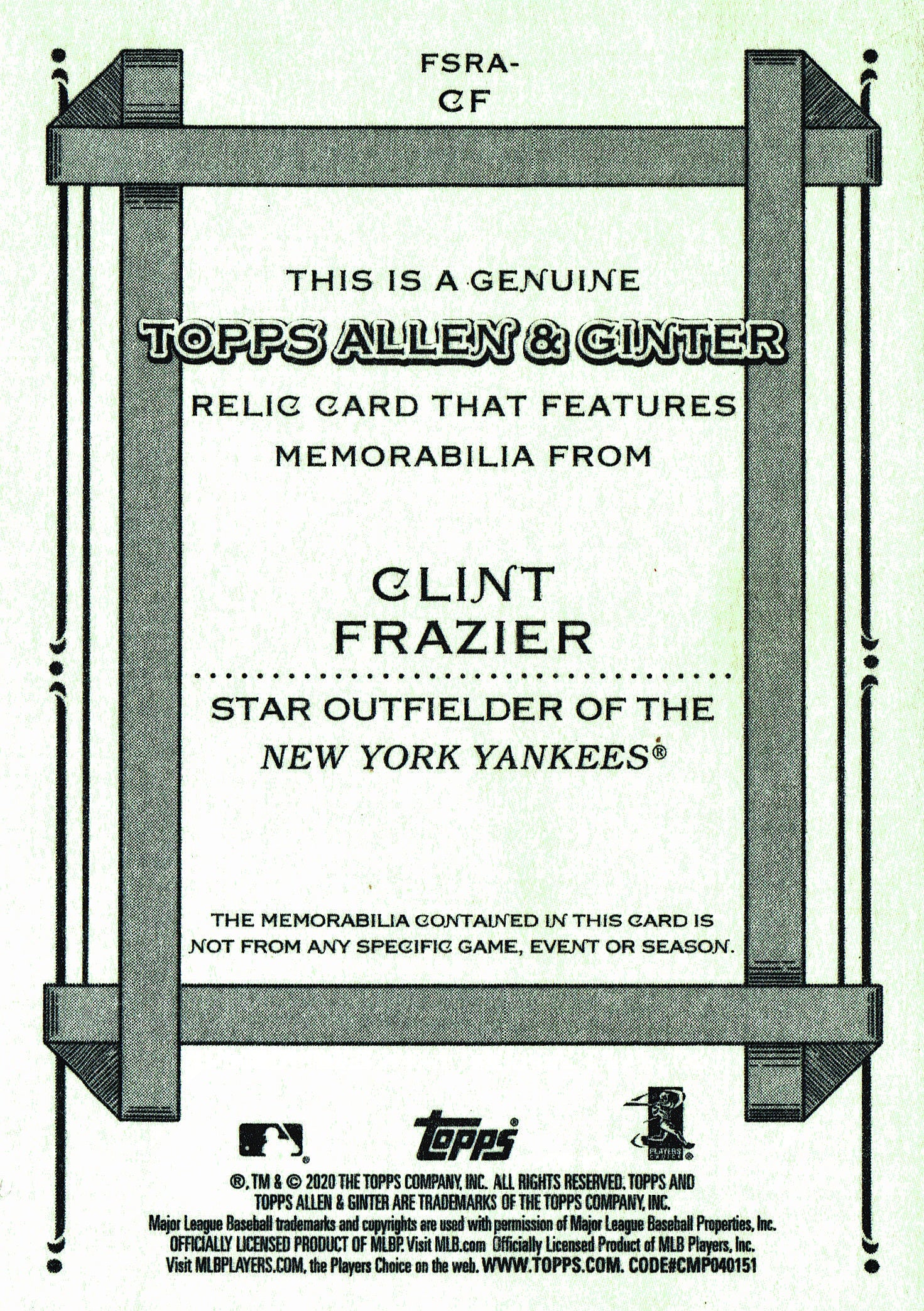 2020 Topps Allen & Ginter Relic Clint Frazier #FSRA-CF New York Yankees