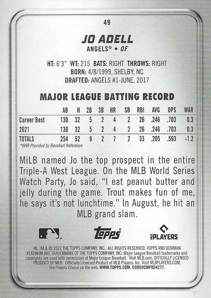 2022 Topps Bowman Platinum Jo Adell Los Angeles Angels #49